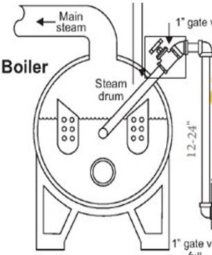SAFETY NOTE: If a blowdown valve is open, NEVER leave the area. You should keep your hand on the valve until you are ready to close it. Always have visual contact with the gage glass during a blowdown to ensure you do not cause a low water scenario.