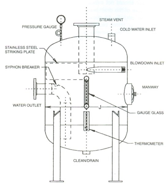 The main disadvantage of a blowdown tank is that the material costs are higher, and it takes up more floor space. Also, as the heat leaves the blowdown water, it is heating up an already hot and uncomfortable space!