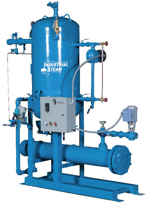 These perform the same function as a blowdown separator but are much larger. The main advantage of a blowdown tank is that they don’t require water cooling because of the volume. The heat dissipates into surrounding area over time as the blowdown sits in the tank. As the next blowdown occurs, water (that has been cooling) from the previous blowdown leaves the tank.