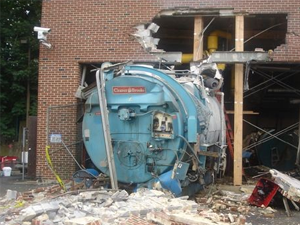 Most often, rusting or overheating are what cause pressure vessel failure. Low water conditions or excessive scale can cause a boiler to over heat the steel. Broken safety valves and water hammer are other examples of how a vessel can become weakened. The issue arises when the pressure envelope of the boiler is compromised. This pressure change can allow water in a steam boiler operating at 100 PSIG to expand 1500 times its original volume. As you can imagine this puts off tremendous force and is why explosions can be so dangerous, not to mention HOT!