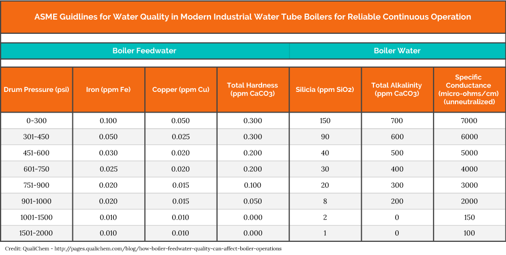 When you need to generate steam, it can be frustrating to have a simple process impeded by outside variables. These impurities can clog strainers and valves, cause pipe or tube failures or form sludge build-up and corrosion within the boiler system. Each boiler system has its own limit of Total Dissolved Solids (TDS) in the feedwater and the boiler. Set this limit with a water chemistry supplier. You will need to take into consideration your water, your plant, and the chemical program in use. Use the chart below  as a reference for some general guidelines. However, your water chemistry supplier will help you set better guidelines based on the chemistry you are using and the impurities in your water.