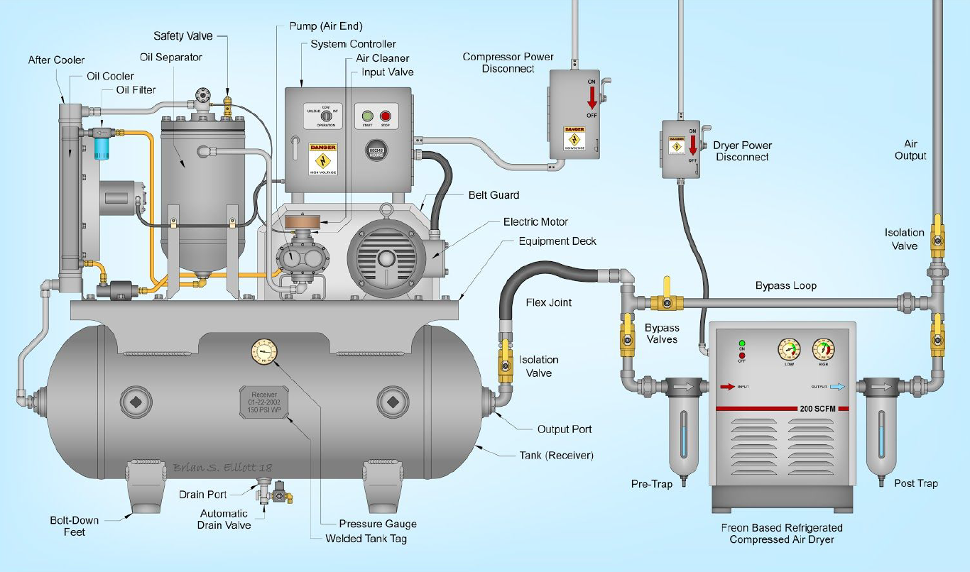 To further understand the rotary screw air compressor basics, you need to understand the different components and how they work. Let’s dive into an air compressor’s parts and how each component functions.