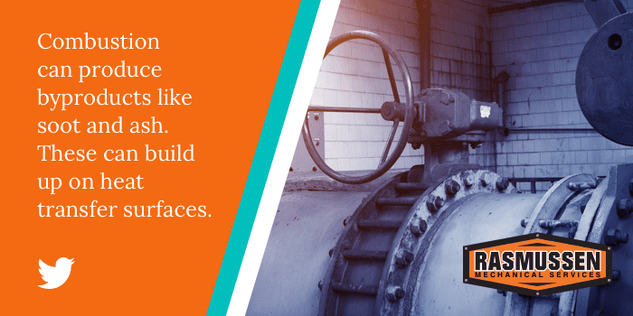 Another common issue occurs when it comes to boiler efficiency is not getting the right amount of air. For proper combustion of fuel inside the boiler, a certain amount of oxygen is required. If too little air is present, the carbon in the fuel will be oxidized, making carbon monoxide. This causes less heat to release because the fuel isn’t completely burned, which lowers fuel use efficiency. Low air generates soot, smoke and carbon monoxide, all of which are dangerous. Too much air also reduces efficiency. The extra air comes in cold and sent out the stack hot, wasting heat.