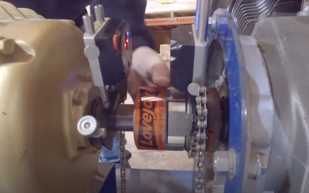 The laser emitter shoots a laser across the shaft to the sensor in a single beam laser set-up. Sometimes both sides will emit a laser and both will simultaneously act as a sensor. In that situation it is known as a dual beam laser. In either situation, as the laser is being emitted, the shaft is rotated to find the center lines of rotation between the two shafts.