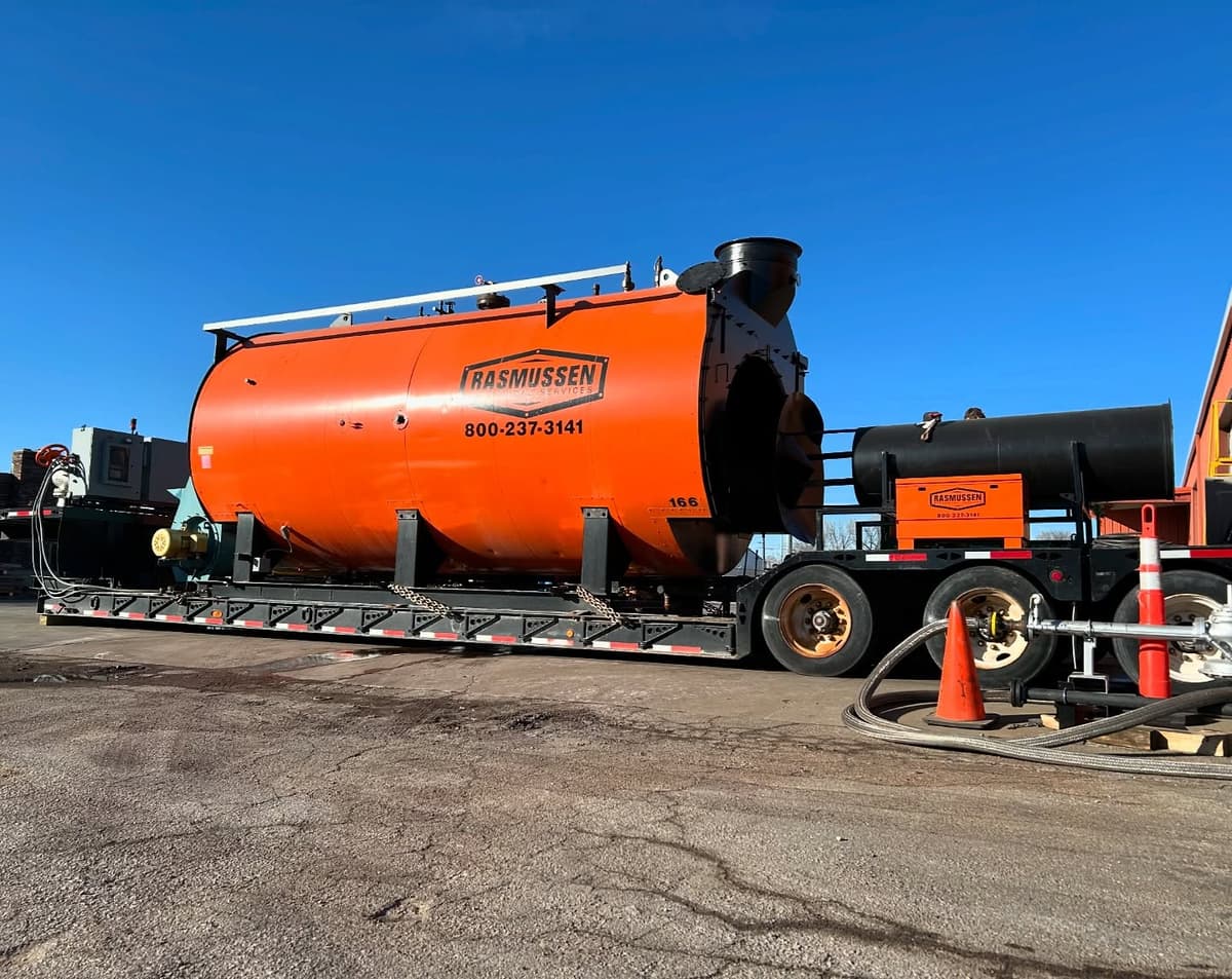 Designed for efficiency and flexibility, our portable steam boilers feature advanced combustion controls, integrated water treatment, and rapid deployment capabilities. With fuel options including natural gas, propane, and #2 fuel oil, our rental units can meet various site and emissions requirements. Backed by 24/7 expert technical support, we ensure seamless operation, minimal downtime, and compliance with ASME and state regulations. Whether you need a short-term rental or a long-term portable boiler solution, Rasmussen Mechanical Services has the equipment.