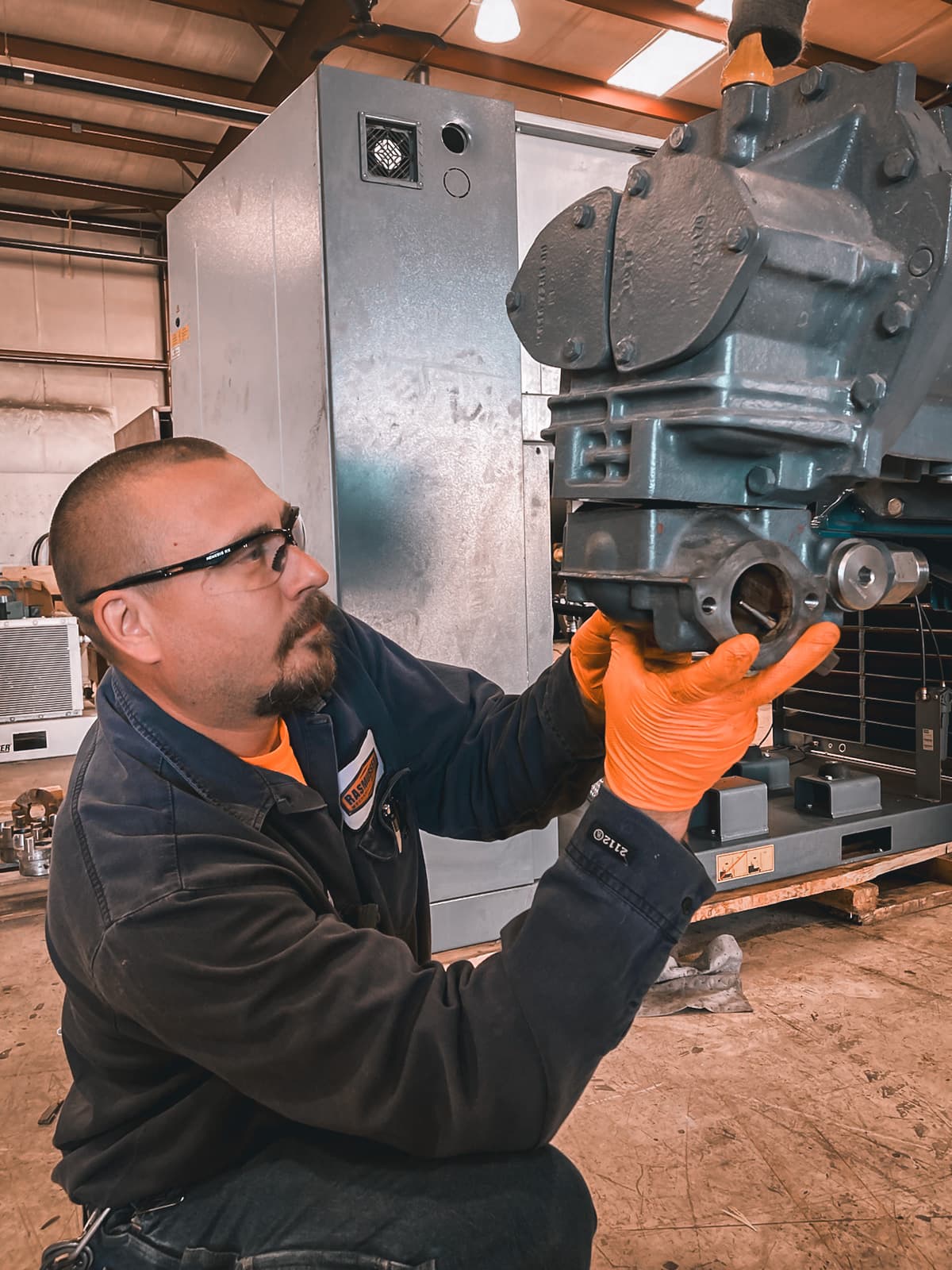 Preventative Maintenance, Emergency Repairs, Parts Sales and Installation. Our expert service team can service on all brands of air compressors and ensure your system is running efficiently. From oil flooded to oil free and screw or reciprocating, our team is your one stop shop for compressor maintenance and repairs.